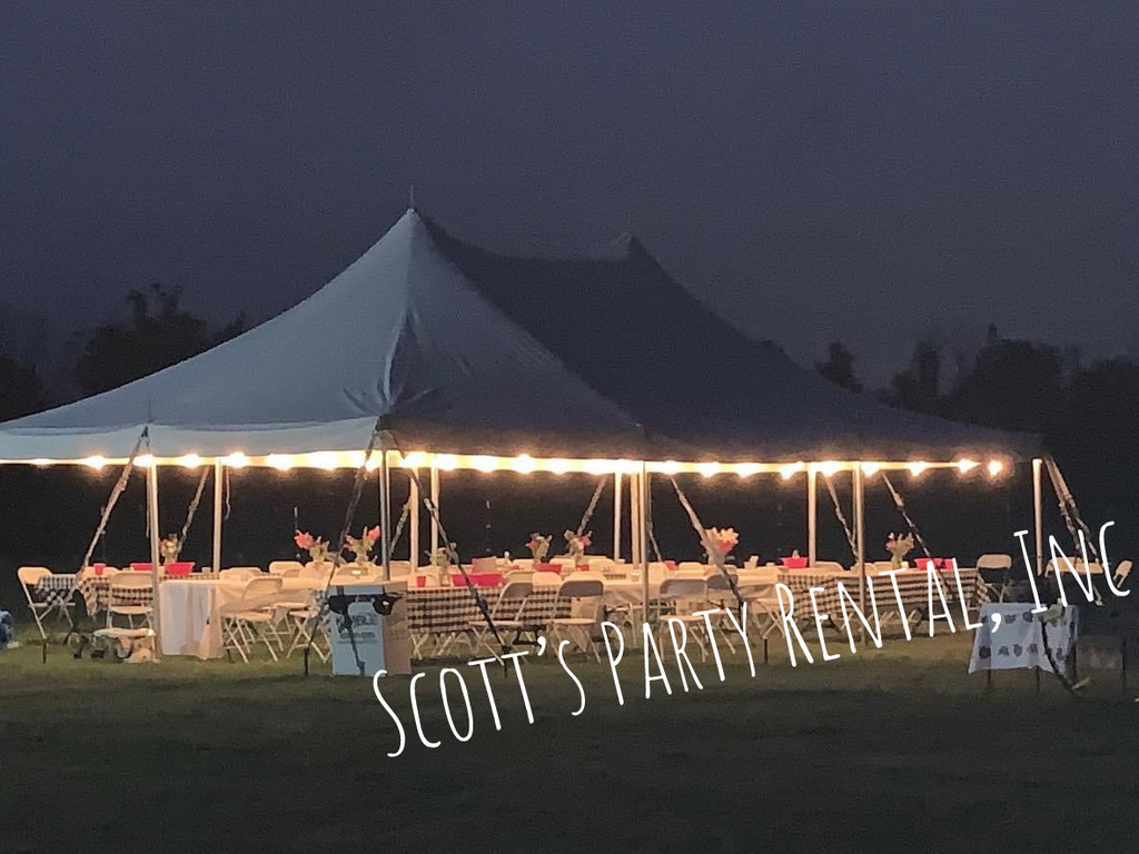 At Scott's Party Rental, we pay attention to detail while offering a wide range of event accessories. Don’t worry about bad weather; we provide side panels and fans that can be added to any tent. If you’re not fond of the look of metal poles, ask about our white pole covers. Pipe and drape is a fantastic option to separate sections of your venue that you don’t want guests to see, and it also creates a beautiful backdrop for photos. Don’t leave your guests in the dark; with our lighting options, you can easily extend your event into the night.